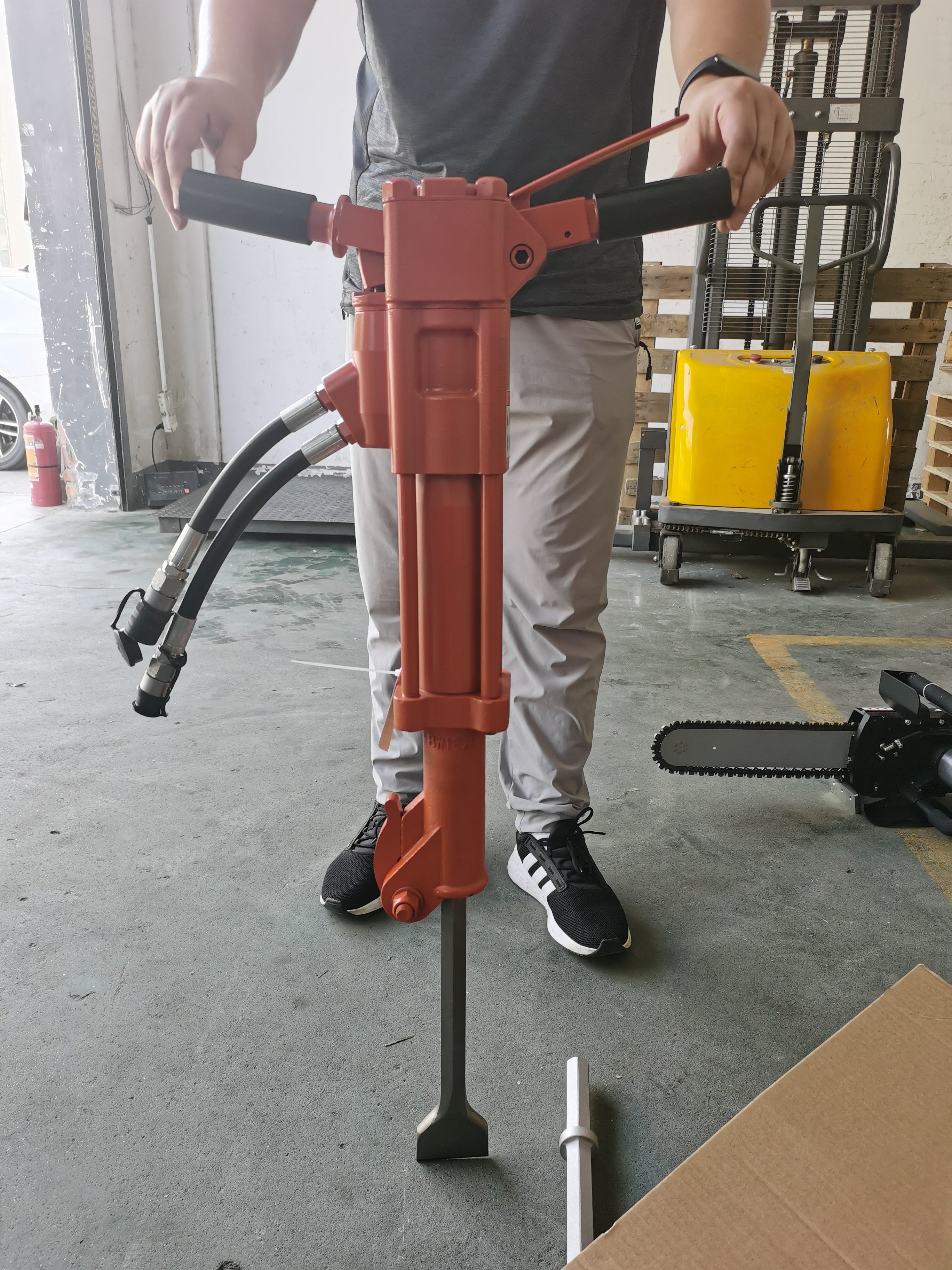 5、液壓鏈鋸 : 重量(不含附件)10kg ;切割深度380mm;配備壓力水箱。